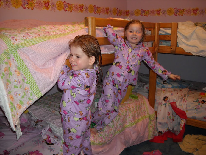 Bringing up children "in the nurture and admonition of The Lord" is quite fun! Our children sure keep us entertained and on our toes every day! One evening after jammies all ten of us were gathered and scattered about the living room and the girls were jabbering on to Daddy about their day. Someone mentioned that our 5 yr old, who shall remain nameless, (at least in this blog), was still having "issues" with keeping her undies fresh and clean. Of course that's not a direct quote from the children, they prefer to be more detailed in their descriptions, except of course when I need to interregate them, then everything is a "ya' know that thingy?". Well, anyway, back to the story...I was sitting on the floor, with the little one on trial standing just barely behind me on my right side and Dad was across from us on the couch with the other 7 sisters scattered about here and there. He proceeded to calmly talk with her about her icky habit, trying to stress the point that it is crucial that children listen to mom and dad, get to the potty quickly, the virtues of keeping oneself clean and dry...you get the point. After he'd talked to her, he was ready for some feedback, so he asked her, "Now, (nameless one @least for mommy's blog), what does The Bible say about that?" To which she readily replied with certainty in her adorable little "elmo" voice, "Thou shall not poop ya pants."